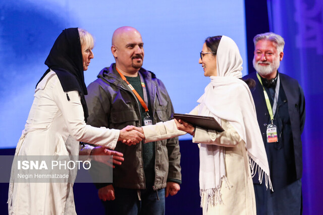 *در ادامه این بخش، هیات داوران در بخش مستند بلند بینالملل رضا میرکریمی و میلیوشا آیتوگانووا روی صحنه آمدند. البته سلیمان سیسه عضو دیگر این گروه که حضور نداشت که ویدئویی ارسال کرده بود.