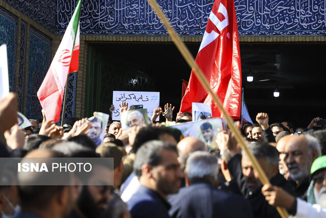 راهپیمایی محکومیت عناصر تخریبگر و تروریستهای مسلح و مراسم تشییع پیکر مطهر شهید «احد زرنگیپور» امروز دوشنبه ۲۲ دی از میدان بسیج تا میدان عاشورا در شهر کرمان برگزار شد.