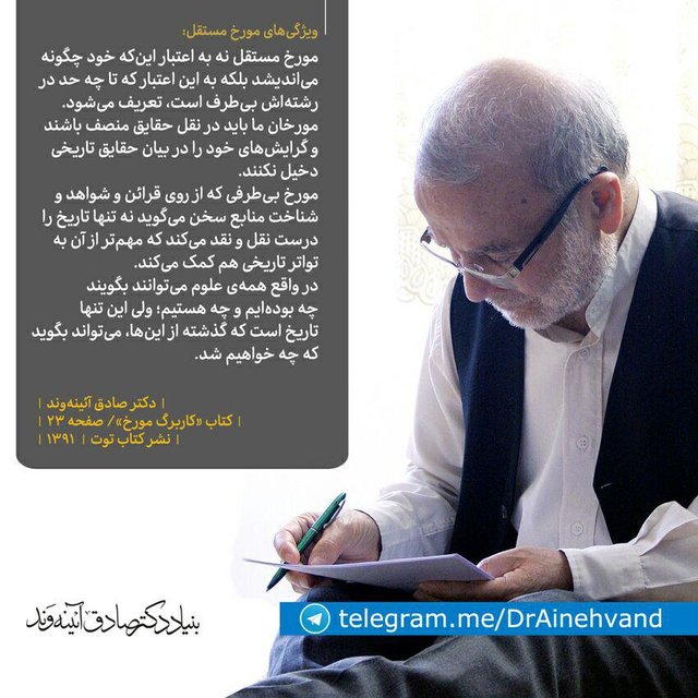 مورخ بیطرفی که از روی قرائن و شواهد و شناخت منابع سخن میگوید نه تنها تاریخ را درست نقل و نقد میکند که مهمتر از آن به تواتر تاریخی هم کمک میکند.