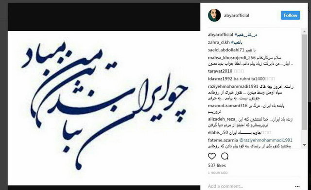 نرگس آبیار- کارگردان نیز عکسی با عنوان «چو ایران نباشد تن من مباد» منتشر کرد.