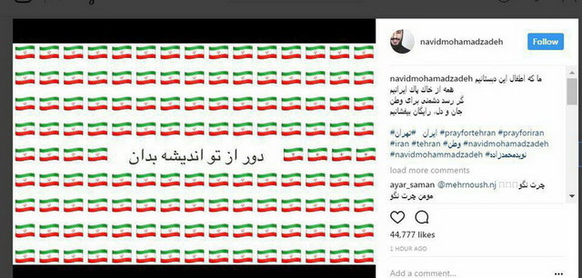 نوید محمدزاده – بازیگر نیز در اینستاگرام خود نوشت: ما که اطفال این دبستانیم/ همه از خاک پاک ایرانیم/گر رسد دشمنی برای وطن /جان و دل، رایگان بیفشانیم