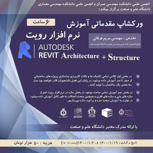 ورکشاپ مقدماتی آموزش نرم افزار رویت با تدریس مهندس فرقانی، روزهای ۱۹ و ۲۰ فروردین ماه، به صورت مجازی در محیط adobe connect برگزار میشود.