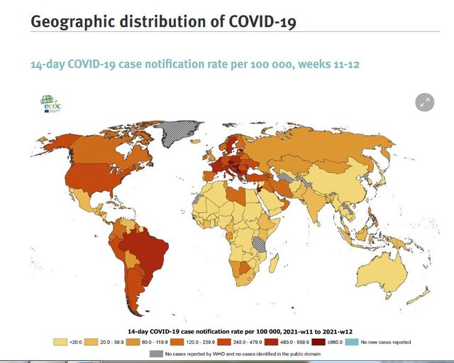 همه گیری به همین شکل از مکانی به مکان دیگر منتشر نمی شود. میزان ابتلا در کشورهایی مانند چین، نیوزلند و رواندا به موارد اندک رسیده که پس از اعمال محدودیت های بسیار سختگیرانه به این آمار دست یافته اند. از سویی دیگر، روند ابتلا در کشورهایی مانند ایالات متحده و برزیل، پس از آنکه دولت ها به سرعت محدودیت ها را برداشتند، به سرعت در حال افزایش است.
