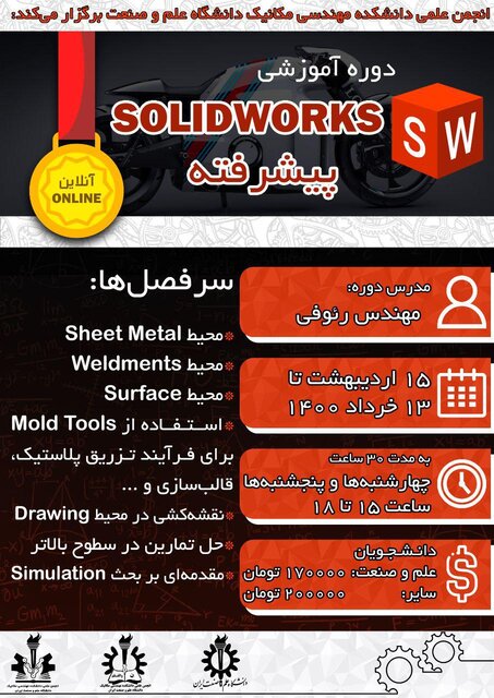 علاقهمندان می توانند جهت ثبت نام به لینک https://evand.com/events/advanced-solidworks-ssme مراجعه کنند.