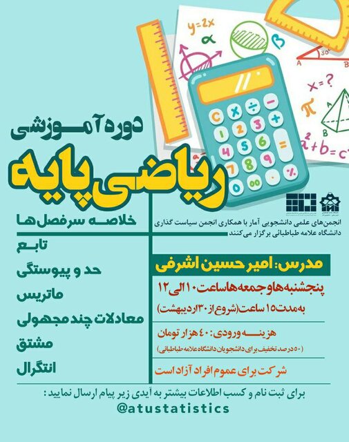 علاقهمندان می توانند برای ثبت نام و کسب اطلاعات بیشتر به شناسه atustatistics @ پیام ارسال کنند.