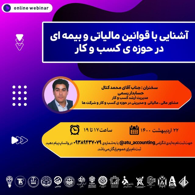 به گزارش باشگاه دانشجویان ایسنا، این برنامه با حضور و سخنرانی محمد کتال ـ حسابدار رسمی، روز چهارشنبه ۲۲ اردیبهشت ماه ساعت ۱۷ تا ۱۹ به صورت مجازی برگزار می شود.