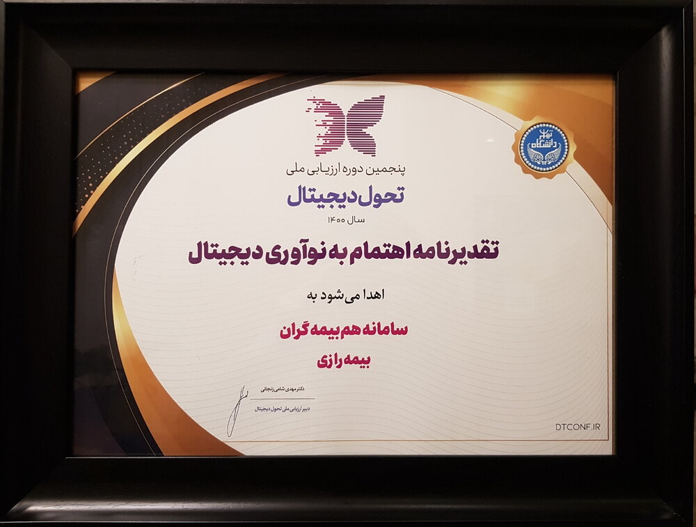 بیمه رازی در این ارزیابی، تندیس برنزین سطح۲ زبدگی دیجیتال و همچنین تقدیرنامه اهتمام به نوآوری دیجیتال برای محصول همبیمهگران در بستر بلاکچین را از آن خود کرد.