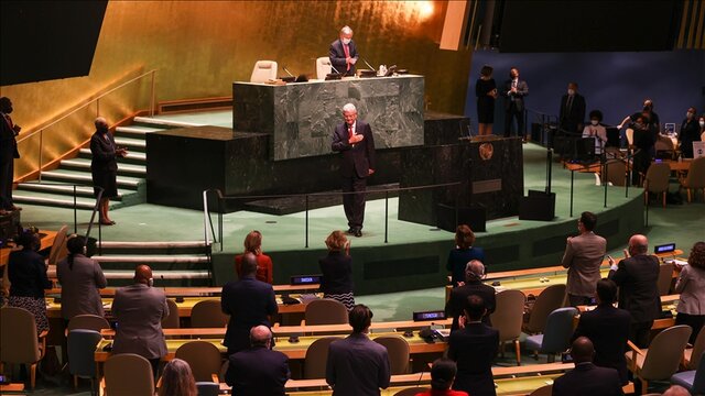 وی افزود: ما باید با تامین واکسن، درمان و تجهیزات برای همه مردم در سراسر جهان، به واکنشمان به کووید ۱۹ سرعت ببخشیم. ما به کشورهایی نیاز داریم که به اهداف آب و هوایی جسورانه در کنفرانس اقلیمی سازمان ملل موسوم به COP۲۶ در گلاسگو پایبند باشند و به آنها عمل کنند. این جنگ در سیاره ما باید پایان یابد.