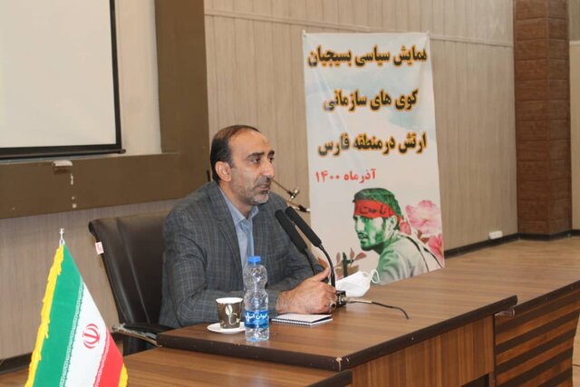 معاون سیاسی-امنیتی استانداری فارس نیز با ابراز خوشحالی و افتخار از حضور در جمع بسیجیان ارتش، گفت: امروز در ارتش ما تخصص و روحیه سلحشوری موج میزند و همه دشمنان ایران اسلامی از نگاه مقتدرانه او به وحشت افتاده اند و اخلاص، ایثارگری، ارتباط با مردم، خدمت به مردم، روحیه بسیجی و انقلابی گری در اجزای آن کاملا ملموس و قابل مشاهده است.