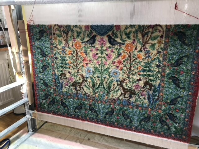این هنرمند در توضیح روند اجرای این ایده از آدم‌های بسیاری یاد می‌کند که از نقاط مختلف ایران او را همراهی کرده‌اند: از طریق رویا حاتمی، دوست دوران کودکی‌ام در ایران که اتفاقا در شرکت سهامی فرش کار می‌کرد با سحر ایلخان که طراح فرش بود، آشنا شدم. برای او از ایده‌ام گفتم و این‌ که می‌خواهم فرشم کاملا ایرانی باشد. بعد از این‌که کار را انجام دادم، سحر کارم را به‌صورت نقشه قابل بافت درآورد. سپس با تورج ژوله گفت‌وگو کردم که توصیه‌های خوبی در مورد تولید فرش ارائه داد و اینکه چه طور باید کار را به جریان اندازم. نوید صفری که در سنندج تولید کننده فرش است و علی ئیلان‌پور که کار رنگرزی انجام می‌دهد آدم‌های بعدی‌ای بودند که به من یاری رساندند و روند اجرایی کار در زادگاهم، شهر سنندج انجام شد و حالا قالی به نیمه رسیده است و امیدوارم جایی به نمایش درآید که پیامش را به خوبی انتقال دهد. گرچه این پروژه مورد توجه تلویزیون ملی سوئد هم قرار گرفت و در برنامه تلویزیونی تاریخ طراحی این کشور مورد بررسی قرار گرفته است.