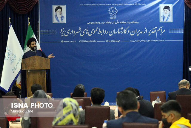 حجت الاسلام «سید محمدناصر حیدری» نائب رئیس شورای اسلامی شهر یزد نیز در این مراسم به نقش روابط عمومیها در کارزار امروز بر علیه کشورمان تاکید کرد و گپفت: جنگ امروز، جنگ روایتهاست و روابط عمومیها در واقع افسران این کارزار هستند.