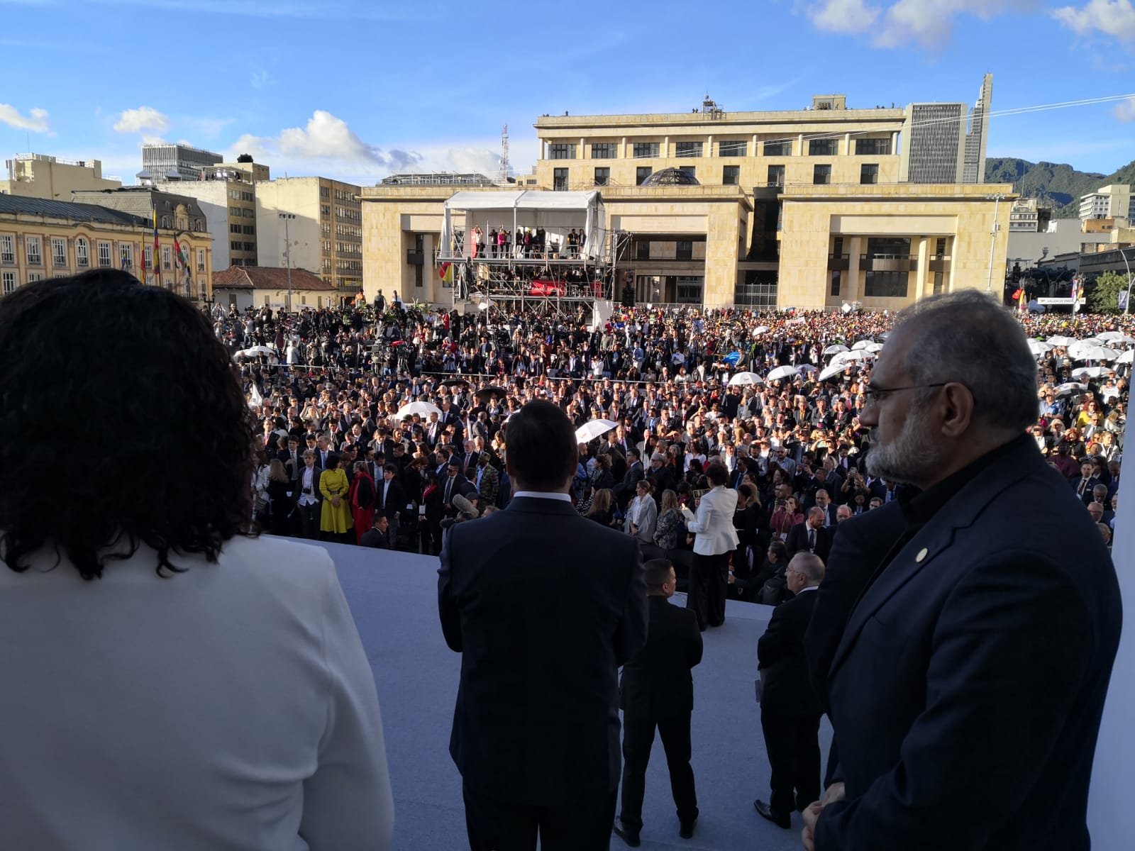 در این مراسم آقای پترو رئیسجمهور منتخب کلمبیا که رویکردی متفاوت با رؤسای سابق این کشور دارد و انتخاب وی به عنوان تضعیف موقعیت و سیطره آمریکا محسوب میشود، رسما از جانب رئیس کنگره به عنوان رئیسجمهور قانونی کلمبیا و خانم مارکز به عنوان معاون رئیسجمهور معرفی و مراسم تحلیف برگزار شد.