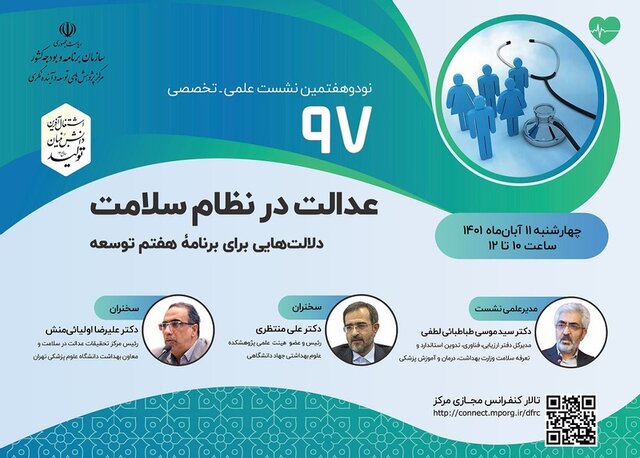 نشست علمی-تخصصی با عنوان عدالت در نظام سلامت (دلالت‌هایی برای برنامه هفتم توسعه)، روز چهارشنبه ۱۱ آبان ماه برگزار می‌شود.