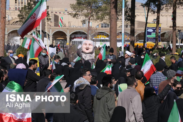 در مسیر راهپیمایی شهر یزد به همت هنرمندان استان و با حضور کودکان و نوجوانان و مردم، مراسم جشن انقلاب به مناسبت ٢٢ بهمن در میدان شهید بهشتی یزد برگزار شد.