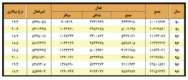 بـر اسـاس اطلاعـات مرکـز آمـار ایـران، نـرخ بیـکاری جمعیـت فار غ التحصیـل یـا در حـال تحصیـل دوره های تحصیلی در سال ،۱۳۹۷ بــرای گــروه مردان و زنان در کل کشور ۱۸.۳ درصد، برای گروه مردان ۱۳.۱ درصـد و بـرای گـروه زنـان ۲۸.۷ درصـد بـوده اسـت.