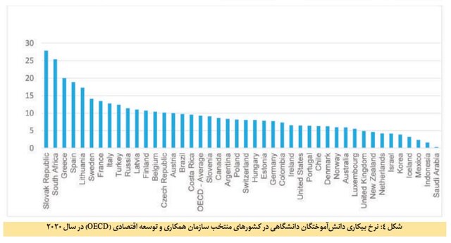 نـر خ بیـکاری دانش آموختـگان دانشـگاهی در کشـورهای منتخـب سـازمان همـکاری و توسـعه اقتصـادی (OECD )در سـال ۲۰۲۰ میـلادی را نمایـش می دهـد. ایــن ســازمان اقتصــادی بین المللی هرســاله، چگونگی وضعیـت اقتصــادی کشورهای جهــان و نیــروی کار در آنهــا را مشخص میکند.