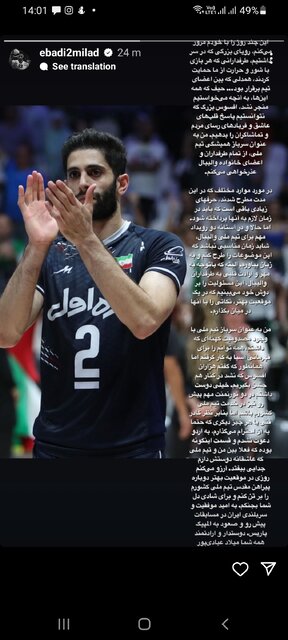 " به عنوان سرباز همیشگی تیم ملی از تمام طرفداران و اعضای خانواده والیبال عذرخواهی میکنم.