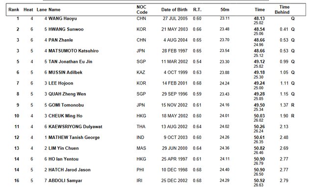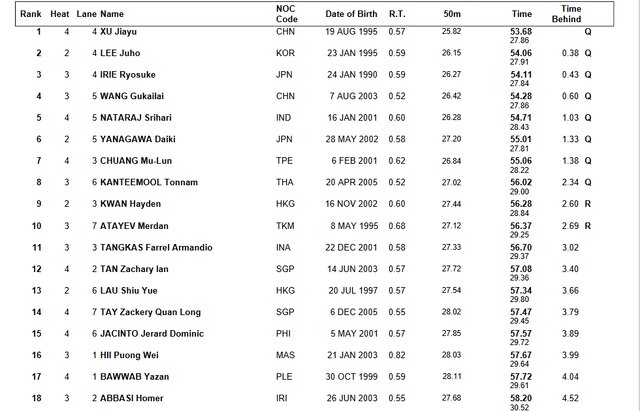 هشت شناگر اول به فینال بازیهای آسیایی راه یافتند.