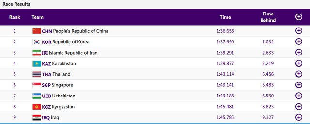 در فینال، ۹ قایق از کشورهای کره‌ جنوبی، چین، سنگاپور، ازبکستان، ایران، قزاقستان، عراق، قرقیزستان و تایلند به رقابت پرداختند.