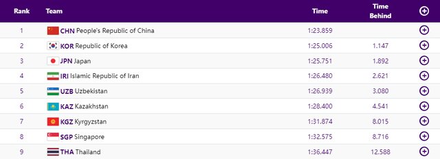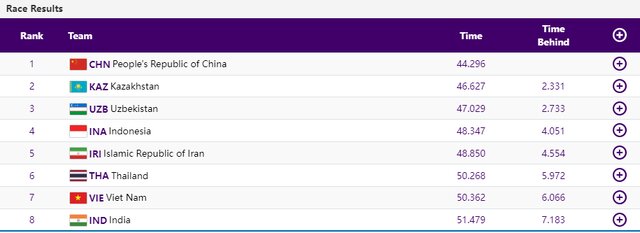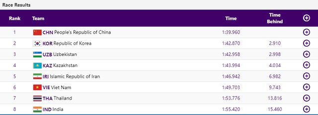 قایقهای چین، کرهجنوبی، ازبکستان به ترتیب اول تا سوم شدند.