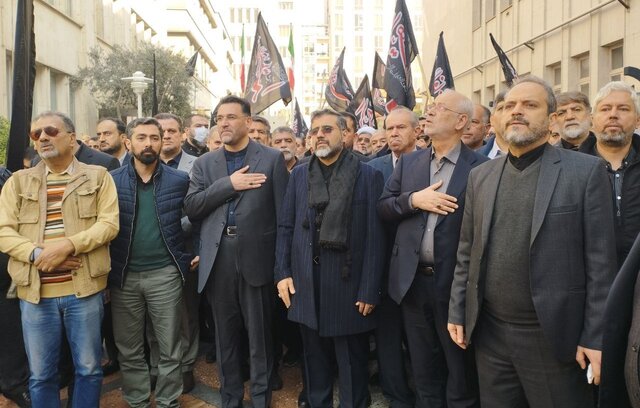 در بخشی از آیین خاکسپاری این پیکر شهید، هنرمندان و آحاد مختلف مردم در محوطه وزارت فرهنگ و ارشاد اسلامی در حمایت از مردم فلسطین «شعارهای مرگ بر آمریکا» و «مرگ بر اسرائیل» سر دادند.