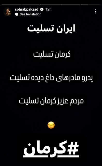 در این میان جمعی از اهالی فرهنگ و هنر نیز در صفحه شخصی خود واکنش نشان داده و یا با بیان تسلیت با مردم داغدیده همدردی کردهاند.