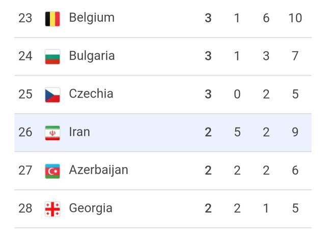 جدول مدالی زنده بازیهای المپیک ۲۰۲۴ پاریس (بهروزرسانی شنبه ۲۰ مرداد ساعت ۲۲:۳۰):
