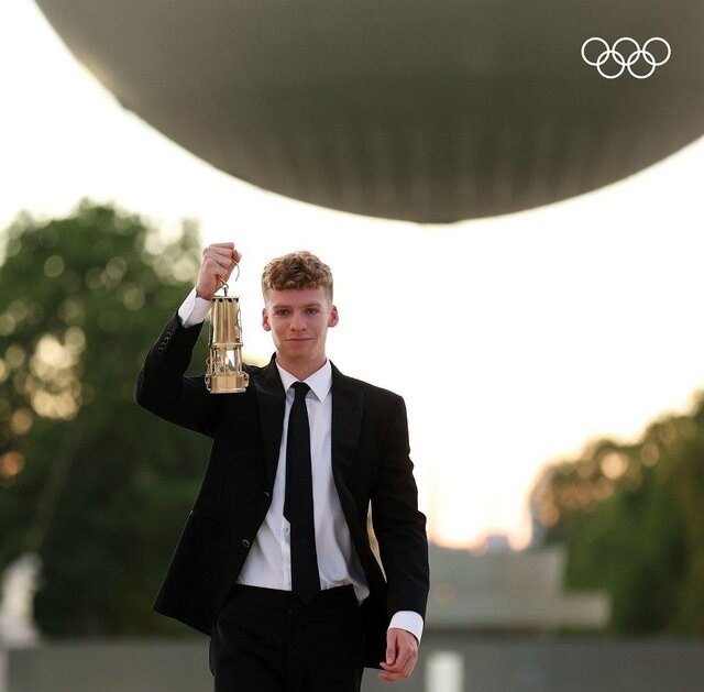 مراسم با خاموش شدن مشعل المپیک پاریس که به شکل بالن بود آغاز شد و شناگر فرانسوی شعله آتش را به داخل ورزشگاه برد.