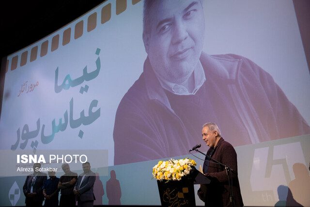 در ادامه، بزرگداشت نیما عباسپور از پیشکسوتان عرصه فیلم کوتاه با حضور مهدی آذرپندار، بیژن میرباقری، سعید پوراسماعیلی و آرش رصافی برگزار شد که در این بخش عباسپور گفت: از شما ممنونم ولی دوستان میدانند خوشحال نیستم، حال من و خیلیها خوب نیست، سالهاست که خوب نیست. ای کاش به جای تقدیر از من داریوش مهرجویی، وحیده محمدیفر، کیومرث پوراحمد، احمدرضا احمدی، جعفر باقرینیا و همه کسانی که در این دو سال از دست دادیم، زنده بودند.