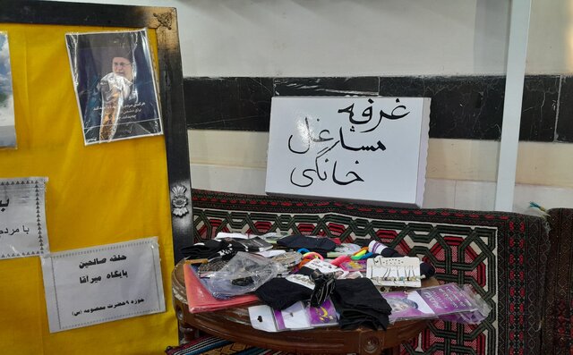 در گوشه دیگر مسجد میزی وجود دارد که غرفه کوچکی از مشاغل خانگی را نشان میدهد.