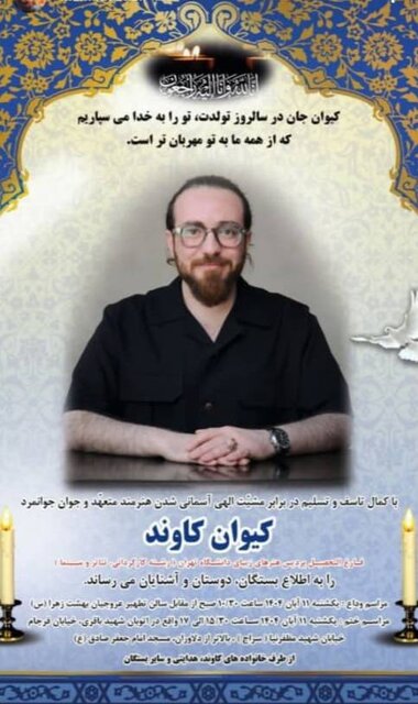 مراسم یادبود این بازیگر جوان فردا ۱۱ آبان ماه از ساعت ۱۵:۳۰ الی ۱۷ در مسجد امام جعفر صادق (ع) خیابان دلاوران برگزار میشود.
