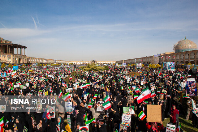 آیین راهپیمایی ۲۲ بهمن، صبح امروز چهارشنبه و همزمان با حضور گسترده و پرشور مردم اصفهان در میدان تاریخی امام(نقشجهان) برگزار شد.