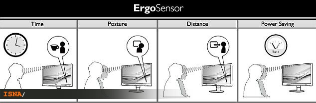به گزارش سرويس فناوري خبرگزاري دانشجويان ايران (ايسنا)، شركت فيليپس دست به ساخت نمايشگر جديدي موسوم به «ErgoSensor» زده كه براي ترویج یک محیط کاری سالم و پربار طراحي شده و اين كار را با هشدار در زمان قوز كردن افراد انجام ميدهد.