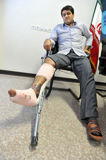 "بايد فورا جراحي شوم، مچ پاي راستم از كنار خرد شده و بايد پلاتين بگذارم، بيشتر از 10 شب است كه از درد نخوابيدهام، زخمهايم چرك كرده و با سرنگ چركها را بيرون ميكشم اما بيمارستان گفته اول دارويت را بياور تا عمل جراحي را انجام دهيم..."
