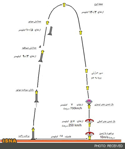 دکتر کلانترینژاد در برنامه آسمان شب با ترسیم شمایی از مراحل پرواز میمون فضانورد گفت: راکت کاوشگر تا ارتفاع 120 کیلومتری زمین صعود کرد ولی این راکتها تا ارتفاع 800 کیلومتر هم در صورت استفاده از ساز و کار چند مرحلهیی قابل پرتابند.