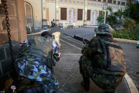 یکی از نیروهای امنیتی ارشد در گفتوگو با خبرگزاری رویترز اعلام کرد که منبع انفجارهای اخیر ارتش بوده است و نیروها تلاش داشتهاند تا از طریق پشت بام وارد مرکز خرید شوند و همین امر موجب شد تا دودی سیاه رنگ تولید شود.