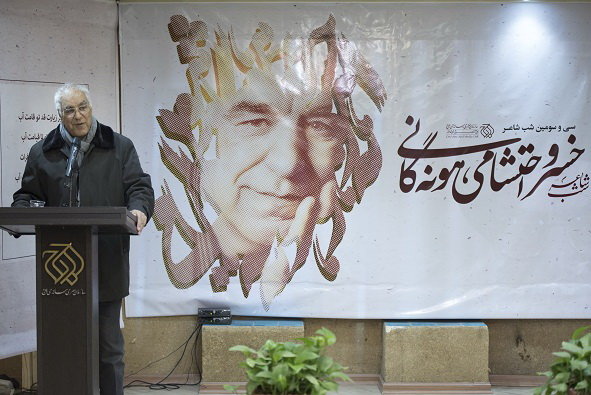 این شاعر در ادامه با اشاره به خسرو احتشامی و شعرهای او گفت: به باور من در ۱۲۰۰ سال عمر شعر فارسی هرگز این جریان به مانند این دو دهه اخیر دارای اعتلا و اوج نبوده است. این مسئله را هم از نظر کیفیت و هم از نظر کمیت عنوان میکنم و در کنار آن میگویم که چه بخواهیم و چه نخواهیم بدون در نظر گرفتن دهه ۵۰، استاد احتشامی را باید تأثیرگذارترین شاعر روزگاران خود طی دهههای اخیر بدانیم.