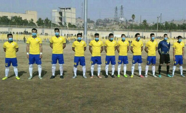 بازیکنان نفت مسجد سلیمان در اعتراض به عدم رسیدگی مسئولان به هوای نامناسب خوزستان با ماسک وارد میدان شدند.