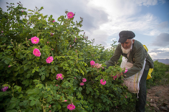 پیرمردی که در عکس میبینید، حالا چند روزی میشود که هر روز، صبح خیلی زود از خواب بیدار میشود و لابهلای بوتههای گل سرخ سرک میکشد. خیلی آرام گلها را از شاخه جدا میکند تا روانه دیگ بزرگ مسی شوند. حداقل باید 30 کیلو گل بچیند و 40 لیتر آب به آن اضافه کند تا یک پارچ گلاب عایدش شود.