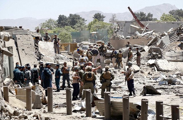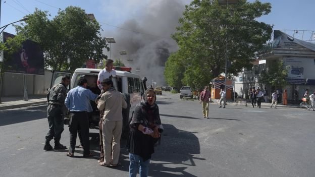 برخی از منابع خبری، محل انفجار را نقطهای در نزدیکی سفارت آلمان و علت انفجار را عملیات انتحاری گزارش دادند. بر اساس گزارش خبرگزاری رویترز، انفجار در منطقهای روی داده که سفارتخانههای فرانسه، آلمان، ژاپن، چین، ترکیه، هند، ایران، انگلیس، کاخ ریاست جمهوری و وزارت خارجه افغانستان در آن واقع شده است.