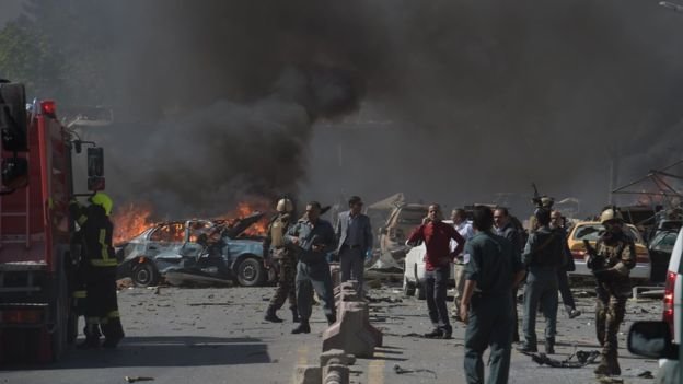 محل وقوع این انفجار در کابل، محل استقرار کاخ ریاست جمهوری و شماری از سفارتخانههای خارجی است. طبق اعلام وزارت بهداشت افغانستان، در این انفجار که ساعت ۸:۲۵ صبح به وقت محلی رخ داد، دستکم ۹۰ تن کشته و ۳۵۰ تن دیگر زخمی شدهاند.