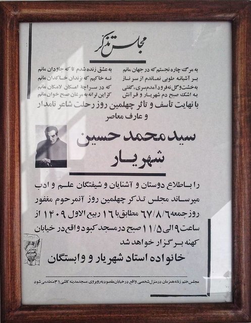 محمدحسین بهجت تبریزی متخلص به شهریار در سال 1367، درگذشت و در مقبره الشعرا تبریز به خاک سپرده شد. بر همین اساس 27 شهریور را «روز شعر و ادب فارسی» نامگذاری کردهاند؛ شهریار در سرودن انواع گونههای شعر فارسی مانند قصیده، مثنوی، غزل، قطعه، رباعی و شعر نیمایی نیز تبحر داشتهاست.