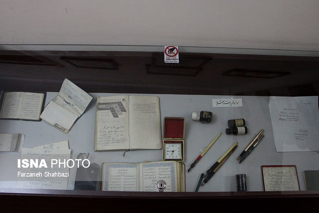 آثار زیادی در طبقه فوقانی خانه شامل کتابهای خطی و نسخه های قدیمی متعلق به کتابخانه شخصی استاد، دستخط ها، عکسها و لوازم التحریر و عینک قدیمی استاد در معرض دید بازدید کنندگان قرار گرفته است، در بخش دیگر خانه، آشپزخانهای نقلی خانه با یخچال و طاقچه ای با ظروف چینی قدیمی مستقر شده است.