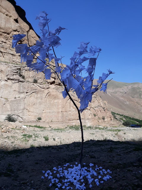 اثر محیطی کاغذ و درخت، روی درختان خشک شده جاده کوهسار با کاغذهای باطله انجام شده و تا زمانی که کاغذها به دست باد سپرده شوند پذیرای علاقهمندان خواهد بود.