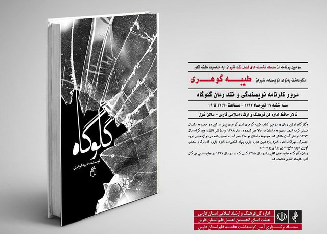 به گزارش ایسنا، رییس انجمن اهل قلم استان فارس از برگزاری سومین برنامه از سلسله نشستهای تخصصی «فصل نقد» در شیراز خبر داد و گفت: این نشست که سهشنبه ۱۹ تیرماه ساعت ۱۷:۳۰ به مناسبت هفته قلم در سالن غزلِ تالار حافظ اداره کل فرهنگ و ارشاد اسلامی فارس (واقع در چهارراه حافظیه) و با حمایت این اداره کل برگزار میشود به نکوداشت و مرور کارنامه نویسندگی «طیبه گوهری» نویسنده موفق شیراز اختصاص دارد.