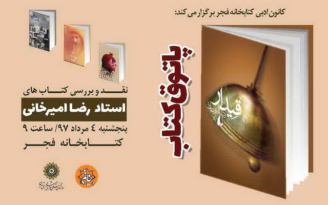 بنا بر اعلام، در این نشست که از ساعت ۱۰ تا ۱۱:۳۰ روز پنجشنبه چهارم مرداد برگزار می‌شود از مقام ادبی و تلاش‌های رضا امیرخانی در خلق آثار ادبی تقدیر خواهد شد.