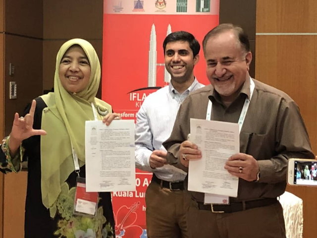 همچنین عصر دیروز، یادداشت تفاهم همکاری میان کتابخانه ملی ایران با کتابخانه ملی مالزی، میزبان هشتاد و چهارمین نشست جهانی ایفلا امضا شد. این تفاهم نامه که در ملاقات فریبرز خسروی با نفیسه احمد به امضای دو طرف رسید ، زمینه های لازم برای توسعه همکاری ها را فراهم می کند. بر اساس این تفاهم نامه دو طرف متعهد شدند که در زمینه دیجیتال و پژوهش های اسلام شناسی اقدامات مشترک را برنامه ریزی کنند.