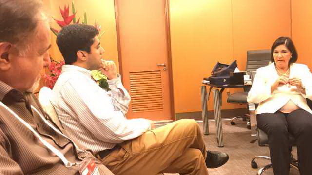 هیات سازمان اسناد و کتابخانه ملی ایران به همراه برخی از ایرانیان حاضر در اجلاس ایفلا با گلوریا پرز سالمرون، رئیس فدراسیون بینالمللی انجمنها و مؤسسات کتابداری(ایفلا) دیدار و گفتوگو کردند.