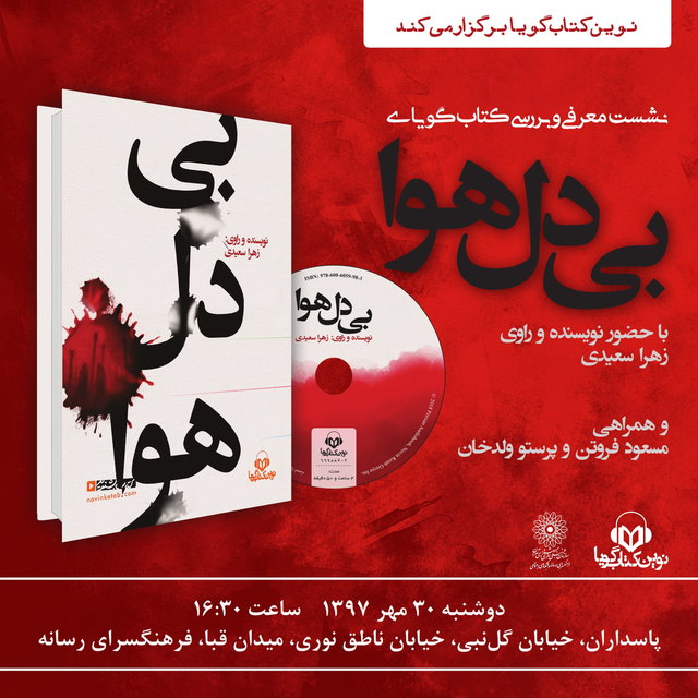 به گزارش ایسنا بر اساس خبر رسیده، در این نشست که به همت ناشر اثر، نوین کتاب گویا، برگزار خواهد شد، علاوه بر زهرا سعیدی، مسعود فروتن، کارگردان باسابقه تلویزیون و پرستو ولدخان به عنوان مهمانان کارشناس برنامه حضور خواهند داشت.