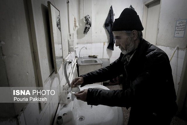 نه خبری از لباس تمیز است، نه تخت، نه کمد اختصاصی و نه حتی سرویس بهداشتی که بهداشت داشته باشد؛ محلی که با حداقل حداقل ها، میزبان بی پناهان است. سرویس بهداشتی را سمت چپ خودم می بینم که گویی سرویس بهداشتی در میان راه است و تنها یک دوش حمام برای حدود ۶۰ نفر مراجعین که تن به استحمام نمی‌دهند و باعث آلودگی هرچه بیشتر فضای گرم خانه می‌شوند.